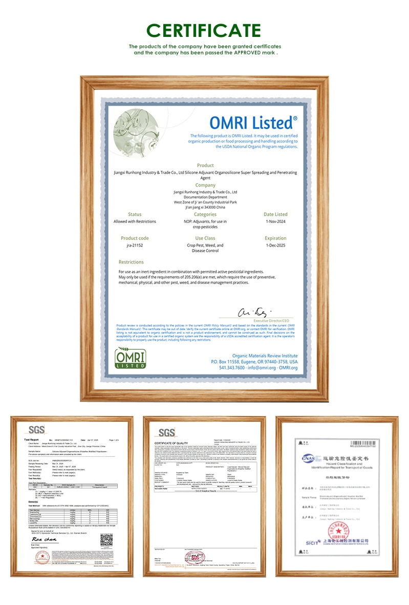 Хорошие новости: мы получили сертификат OMRI на наш силиконовый адъювант в сельском хозяйстве (силиконовый суперрастекающийся и проникающий агент), наша продукция органическая и высокого качества, мы очень хорошо контролируем наше сырье. Если у вас есть какие-либо вопросы, вы можете обратиться к нам. связаться с нами!